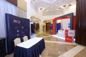 Networking area, food & beverage setup arranged.